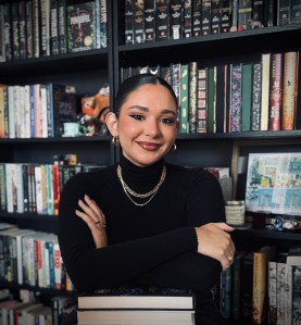 Treviño writes gothic romantasy with sharp teeth and moody vibes. She hopes her readers see themselves in her characters and can get lost and found in the shadowed worlds she creates.